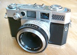 発売年:1958年レンズ:交換式 S-CORAL45mm/F1.5 W-CORAL35mm/F3.2 TELE-CORAL100mm/F3.5 サイズ:140×84×55mm シャッター速度:B・1〜1/400秒 重量:約735g(本体のみ) 電池:セレン光電池 当時価格:38000円(S-CORAL45mm/F1.5付) |