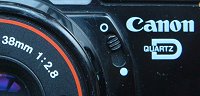 発売年:1983年レンズ:CANON LENS 38mm/F2.8 サイズ:124×74×50mm シャッター速度:EV6(1/8秒・F2.8)〜17(1/500秒・F16) 重量:約315g 電池:単3乾電池 2個 当時価格:47800円
