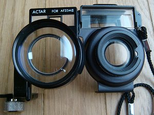ACTOR TELEPHOTO LENSというテレコンバージョンレンズ(写真左)を頂戴しました。「FOR AF35MII」という表記があることから、