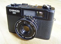 発売年:1972年? レンズ:CHINONEX COLOR LENS 38mm/F2.7 サイズ:111×72×51mm シャッター速度:B・1/30〜1/650秒 重量:約320g 電池:H-C(MR44)型水銀電池 1個 当時価格: |