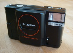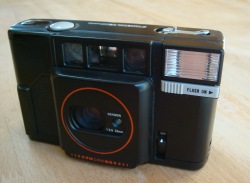 発売年:1983年レンズ:COSINON 33mm/F3.5 サイズ:117×70×42mm シャッター速度:EV8.6〜EV17(ASA100) 重量:約245g 電池:単4乾電池2個 当時価格:32800円 |