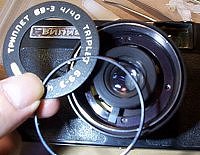 ![]() | ファインダーがちょっと汚れていましたので、クリーニングします。上にかぶせてある黒い遮光紙は、黒画用紙のような薄い物でした。 以上でレストア完了です。きれいなカメラになりました。このカメラは、チープなロシアカメラと考える人もいるかもしれません。でも、私にはそうは感じられません。カメラの原理を素直に、そしてシンプルな道具として工夫してある実用的で、魅力的なカメラという印象を持ちました。 なお、このカメラをご提供いただきましたhash様。また、カメラに関する情報をお寄せいただきましたRicky Nakamura様に、感謝申し上げます。 |