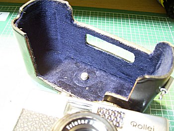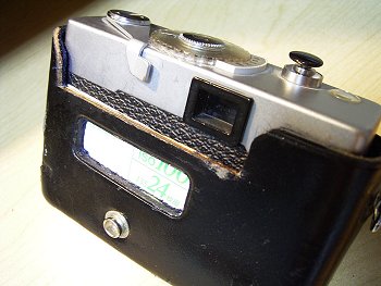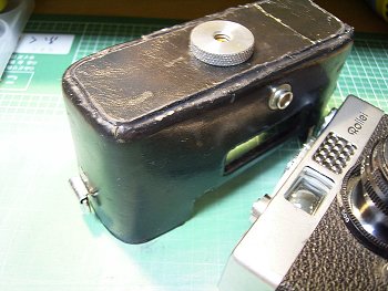 ![]() | オリジナルがEE-MATIC260のケースですから、背面にフィルムカートリッジの覗き窓があります。塞ごうかと迷いましたが、フィルム箱を切ってフィルム覚書として利用するのはどうでしょうか。 |