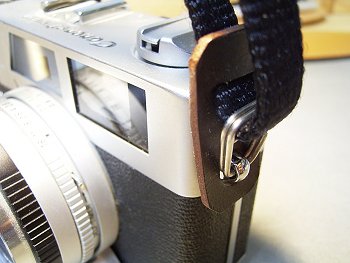 ![]() | 早速、カメラに装着してみました。ご存知のとおり、このアクセサリーは、ストラップを吊るす金属リングとカメラのボディーが接触することでボディーに傷が付くのを防ぐ役目をします。保護カバーをアイレットに付けることで、写真のようにボディーと金属リングとの間のクッションになっています。 古いカメラには、半透明の樹脂製カバーが付いていることがありますが、渋い革カバーですと雰囲気が随分変わるものです。 このような、お洒落でこだわりのあるアクセサリーは、カメラライフを楽しく、さらに深いものにしてくれる魅力を持っています。 貴重なものをいただきまして、ありがとうございました。tibikoronさんに感謝申し上げ、ご紹介とさせていただきます。 |