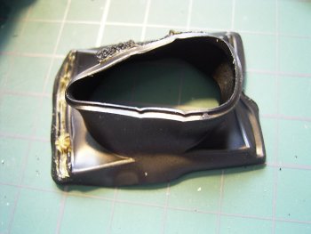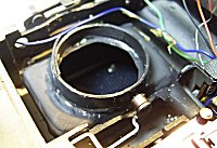 ![]() | これはフィルム室内とレンズ間にある遮光部品です。プラスチック製ですが、熱が加わって変形したようです。どういう状況だったのでしょうか?これが後に、さらに困難なレストアの原因になるとは思っていませんでした。 |