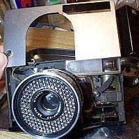 ![]() ![]() | ゾルキーのコンパクトカメラのレストアです。まず、側面にあるカニ目を2つ外して、前面を覆っているアルミカバーを上にスライドさせると、裏蓋と共に、このアルミカバーが外れます。シンクロ接点は外す必要はありませんが、リード線が付いていますので注意してください。 |