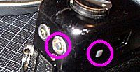 ![]() | ペトリコンピューター35の黒ボディーです。名前も面白い、前面のロゴも面白いカメラです。シャッター不動、距離計ずれ、露出計不動ジャンクです。 まず、底部の電池ボックスが腐食のため開きません。これはCRC556を少々つけて、時間をおいてプライヤーで回しました。ボックス裏の断線をはんだづけ、電極をきれいに磨いて通電は確保しました。しかし、シャッターが開きません。レンズ周りのリングを外すと、すぐにシャッターが見えます。 |