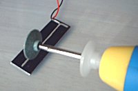 ![]() ![]() | ところが、私の不注意でこの小さな電池を割ってしまいました。なんとガラスでできていました。これはセレンではなくシリコン系の半導体太陽電池です。(割れやすいということは「にしだ」さんにご連絡いただいていたのですが。) ここで諦めるわけにもいかず、大きなセレンを切断することにしました。ホビー用のルータがありましたので、これで切断しました。円形スペースにあわせて、写真のような形状になりました。 |