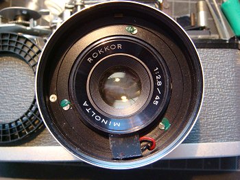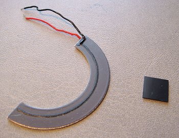 ![]() ![]() | 写真がセットした状態です。これだけで露出計が十分に機能するかどうか不安でしたが、なんとか指針は振れています。フィルム感度を高めに設定すればなんとか適正露出になりそうです。受光部リングを取り付けて、外見上はもとどおりです。円形セレンだけが、寂しそうに取り外されています。 円形セレンは代用品に困るわけですが、上記の極小の光電池を利用できればレストアの幅も随分広がると思われます。光電池をご提供いただきました、「にしだ」様に、この場をお借りしてお礼申し上げます。 |