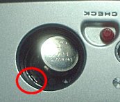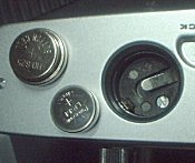 ![]() ![]() | おまけに、電池について少し記載します。左はH-D(MR-9)型水銀電池の代用電池です。普通はその右にあるLR44アルカリ電池で代用可能なのですが、ご覧のとおり大きさに差があります。何かで電池周囲の隙間を埋める簡易アダプタは簡単に作れるのですが、このカメラは、写真右のようにプラス側に電極が出ています。したがって、電池の周囲をすべて何かで包んでしまうと通電しないことになります。 |