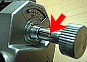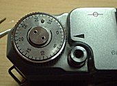 ![]() ![]() | ファインダークリーニングのため、軍艦部を外します。巻き上げノブは中央のカニ目(順ねじ)を外して、巻き戻しノブは、赤矢印のねじを外してください。 |