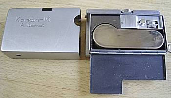 | テレホンカードより小さいのに、手に持つと、ずっしりと重量感がある。金属質感の非常によいカメラ、コーナン16のレストアです。磨くとこのようにきれになりました。 |