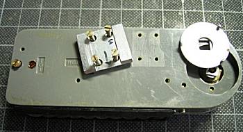 ![]() | どうしてなのかと回路を調べましたら、セレンの小面積部分と大面積部分が並列回路になっていました。これを、先ほどの切り替えスイッチで切り替えています。低照度の時は、2つのセレンを並列に、高照度の時は、小面積部分のセレン1つで、測光するという仕組みです。 もともと長さ6cmのセレンが入っていましたが、手持ちの新しい4cmセレンを移植します。削り線を入れる位置は、もとのセレンの比率を計算して決めました。リード線の付いていない端には、リード線をはんだ付けします。以上、レストア完了です。完成後、正常な露出計で露出補正を行いましたが、補正は必要ななく、このまま完成となりました。 |