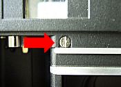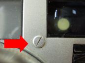 ![]() ![]() ![]() | カメラによっては、軍艦部をあけなくても調整ができるようになっているものがあります。その例をご紹介します。 飾りねじが蓋になっていて、このねじを外した穴に、細いドライバーを差し込んで内部の調整ねじを回すことができます。カメラ前面にあるタイプ。ファインダー接眼部にあるタイプ、フィルム室内にあるタイプなど、様々です。ご紹介した写真はすべて水平調整を行うねじです。 |
