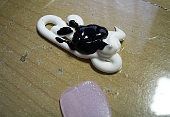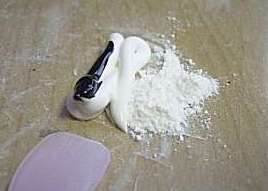 ここで610さんからアドバイスをいただきました。セメントに砂材を入れるの同じ原理で、炭酸カルシウムを混ぜると強度が増すということでした。早速、ベビーパウダーを少量混合してみたところ、確かに強度は高まりました。ありがとうございました。 これを、小さなヘラである程度平らに塗りますが、やはり、なかなか平面にはなりません。 |
