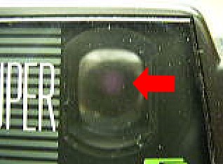 WWさんから教えていただいたアイディアによりますと、デジタルカメラは赤外線を一部感知するので、これを利用する方法があるとのことでした。早速試してみました。写真は、RICOH FF-3AF SUPERの赤外LED部分の写真です。 RICOH FF-3AF SUPERに電池を入れてシャッターを半押しにしてみます。正常であれば、赤外LEDが発光するはずです。当然、肉眼では光はまったく見えません。しかし、デジカメの液晶画面を通して見ると、明らかに光っています。写真赤矢印をご覧下さい、薄い紫色に発光しているのが確認できると思います。これで赤外LEDが発光しているかどうか確認することができます。WWさん貴重なアイディアをご紹介いただきまして、ありがとうございました。 |