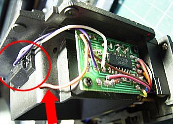 ![]() | 受光部と露出計部ユニットがボディーから分離します。赤丸がSPD(シリコン・フォト・ダイオード)による受光部です。ICの付いた露出計回路基板が見えます。赤矢印のリード線は、ボディー底部の電池ボックスの金属端子に繋がるものです。ユニットを外す際は、断線の危険がありますので、はんだで外しておくとよいでしょう。 一式は、TTLシャッター幕面反射測光方式をとっています。TTLとは、Through-The-LensまたはThrough-Taking-Lensの略で、受光部をカメラ内部におき、レンズを通して測光をる方法をいいます。 |