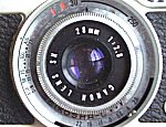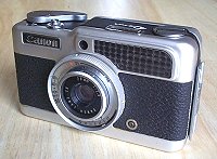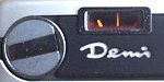 セレン露出計内臓のハーフサイズカメラ。デミシリーズの初代。設定リング(シャッター速度と絞り値連動)を回して、露出は、セレン光電池式露出計の指針に、追針を合わせる追針合致式。これにより適正露出が決まるプログラム式。分割巻上げ可能。ファインダーがレンズの真上にあるため左右のパララックスは起こらない。設定リングをストロボ位置にすると、速度は1/30秒固定となり、絞り値は任意に設定できる。 |