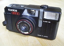発売年:1984年レンズ:HEXANON 38mm サイズ:122×68×45mm シャッター速度:1/125秒 重量:約200g 電池:単3乾電池2個(ストロボ用) 当時価格:-- |