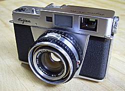 発売年:1958年レンズ:FUJINON 45mm/F2 サイズ:122×80×61mm シャッター速度:B・1〜1/500秒 重量:約660g 電池:なし 当時価格:19500円 |