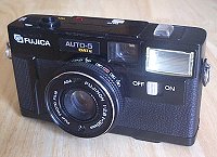 発売年:1980年レンズ:FUJINON 38mm/F2.8 サイズ:134×77×53mm シャッター速度:1/8〜1/500秒 重量:約350g 電池:単3乾電池 2個 当時価格:39000円 フジカオート5にデート機能を追加した、プログラムAE。距離はゾーンフォーカス目測式。自動フィルム装填、自動露出など5つのオート機能持ったカメラ。フィルム感度を赤印にすると、指定フィルム装填時、フォルム感度が自動設定となる。 |