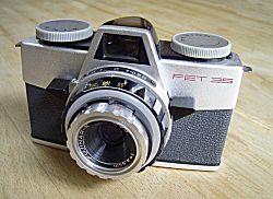 |  露出計のない完全マニュアルカメラ。距離計はなく、ピントは前玉回転目測式。フィルム巻上げは、背面にあるストッパーを解除し、WINDノブを回す。鏡胴にある向かって右側の三角レバーでシャッターをチャージし、左側のレバーでレリーズする。小学校高学年や女性を中心にヒットしたフジペットが発売になったのは1957年。中学生にもその範囲を広げようと2年後にこのフジペット35が発売になった。レンズは3群3枚構成。シャッターはCOPAL#000。ボディーカラーは黒・赤・緑の3色がある。シンクロ接点や、ファインダー内にはパララックス補正の役割をする突起があるなど、簡易ではあるが、カメラとしての基本機構を装備している。 |