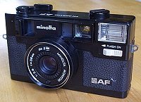 ![]() | 発売年:1979年 レンズ:ROKKOR 38mm/F2.8 サイズ:132×76×54mm シャッター速度:1/8秒〜1/430秒(EV6〜EV17) 重量:約350g 電池:単3乾電池 2個 当時価格:42800円 オートフォーカス、プログラムEEカメラ。巻き上げ、巻き戻しは手動。フォーカシングはファインダー内にゾーンフォーカスLED表示される。ボタンによるフォーカスロック機能付き。フォーカスロックボタンを押すとピントが固定され、続いてレリーズボタンを押すとシャッターが切れる。デート機能はない。 |
