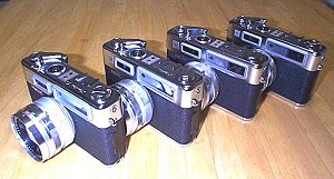 | 1966年に発売になったヤシカエレクトロ35。この初代カメラが4台も手元に集まりました。(hashさん、udoさん、HIROさんに感謝いたします)どれも同じかと思っていたら、よーく見るとちょっと違う。つまりマイナーチェンジです。そこで、表にして比較してみました。よくあるマイナーチェンジはメーカーの試行錯誤の結果なのか、調べてみると面白いかもしれません。(udoさんからさらに605・608番台の情報もいただきました。) |