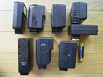 以下「ストロボ」と記載します。) 大きな一眼レフカメラに、大きなストロボはお似合いですが、私が使うような コンパクト機には、背の高い大きなストロボは、どうも似合わない気がしてなりません。 そこで、小さなストロボというのもがあるのか常々探していたのですが、いろいろ 集まってきましたので、ここにご紹介いたします。 |