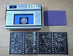 | 付属品:印画紙と4種類のフイルム 子供のころ遊んだ記憶があります。写真の写る原理を理解するのには貴重な存在なのかもしれません。 |