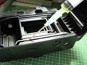 中古カメラは、かなり汚れていることが多いものです。外部にアタリがあったり、擦り傷があったり、部品が外れていたりと様々です。裏蓋を開けて見ると、黒いスポンジのようなもので縁取られていることに気づきます。これがモルトプレーンというものです。外からの光の進入を防ぐのが目的であることはすぐに理解できます。ちょっと触ってみると、なぜか柔らかくなっていて、手にべと付く。強く触れると、べとべと剥がれてくる。モルトプレーンが劣化している証拠です。このままにしておくと、カメラ内部がべとべとになってしまうだけではなく、遮光の効果も望めなくなります。