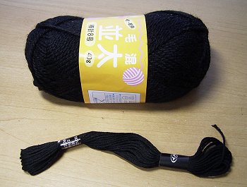 黒色の毛糸を溝に入れていく方法です。接着には、両面テープでは