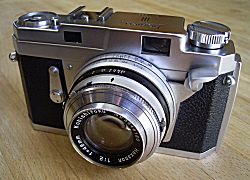 発売年:1956年レンズ:HEXANON 48mm/F2 サイズ:128×75×63mm シャッター速度:B・1〜1/500秒 重量:約740g 電池:なし 当時価格:34500円 |