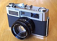 発売年:1961年レンズ:HEXANON 48mm/F2 サイズ:135×81×75mm シャッター速度:B・1〜1/500秒 重量:約730g 電池:セレン光電池 当時価格:24800円 距離計連動式カメラ。1959年発売のKONICA Sに改良を加えたもの。連動露出計の指針が軍艦部だけではなく、ファインダー内にも表示させるようになった。その他、軍艦部、鏡胴等に若干のデザイン変更が見られる。セレン、ファインダー枠はプラスチック製。シャッター速度や絞り値を変化させると露出計の指針が動き、指針が中央に来たときが適正露出となる。 |