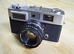 発売年:1963年レンズ:HEXANON 47mm/F1.9 サイズ:138×82×71mm シャッター速度:B・1〜1/500秒 重量:約700g 電池:セレン光電池 当時価格:18800円 |