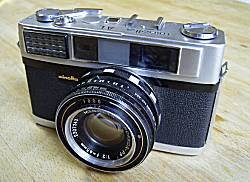 発売年:1961年レンズ:ROKKOR-PF 45mm/F2 サイズ:132×80×65mm シャッター速度:B・1〜1/1000秒 重量:約760g 電池:セレン光電池 当時価格:18500円 距離計連動式カメラ。セレン光電池による定点合致式露出計がある。軍艦部に指針があり、指針が中央になるように、シャッター速度と絞りを調整する。これを利用すれば、シャッター速度優先、絞り優先でも使用できる。シャッターは倍数系列等間隔目盛のOPTIPER CITIZEN MLTシャッターを搭載し、1/1000秒を実現している。 |