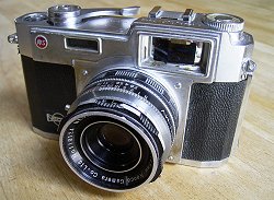 発売年:1958年レンズ:NEOKOR 45mm/F2.8 サイズ:125×80×69mm シャッター速度:B・1〜1/400秒 重量:約580g 電池:なし 当時価格:14500円 |