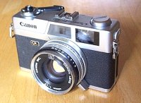 発売年:1970年レンズ:CANON LENS 40mm/F1.7 サイズ:120×75×60mm シャッター速度:B・1/4〜1/500秒 重量:約620g 電池:H-D(MR-9)型水銀電池 1個 当時価格:27000円