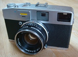 発売年:1958年レンズ:G.ZUIKO 42mm/F1.8 サイズ:139×82×67mm シャッター速度:B・1〜1/500秒 重量:約815g 電池:セレン光電池 当時価格:34800円 |