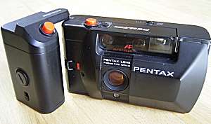 発売年:1983年 レンズ:PENTAX LENS 35mm/F2.8 サイズ:108×70×44mm シャッター速度:1/8〜1/450秒 重量:約365g 電池:単4乾電池2個 当時価格:42000円 |