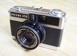 発売年:1970年レンズ:PETRI 40mm/F2.8 サイズ:101×64×56mm シャッター速度:1/30〜1/200秒 重量:約330g 電池:H-C(MR44)型水銀電池 1個 当時価格: プログラムEEカメラ。PETRI COLOR35の沈胴レンズを固定にした機種。完全プログラムEEでマニュアル操作はできない。GNを合わせることによりフラッシュマチックが効く。距離計は無く、距離はゾーンフォーカス(ピクトグラム)。非常にコンパクトで使いやすい。ファインダー横の小窓はバッテリーチェックを兼ねた露出計指針。軍艦部側面のボタンを押すとこの指針が動きバッテリーチェックができる。フィルム装填は裏蓋脱着式。 |