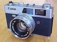 発売年:1965年レンズ:CANON LENS 45mm/F1.7 サイズ:140×79×66mm シャッター速度:B・1〜1/500秒 重量:約800g 電池:MP型水銀電池 1個 当時価格:23800円 シャッタースピード優先EEまたはマニュアル可能の距離計連動式 カメラ。QLはフィルムのクイックローディング機構の略。マニュアル操作時には露出計は機能しない。発売当初のモデルにはQuick Loadingの文字が刻印されているが、その後写真のようにQLマークとなった。初代キヤノネットとニューキヤノネットの中間的存在、外観も両方の特色が混ざっている雰囲気。ずっしりと重い金属感あふれるカメラ。 |