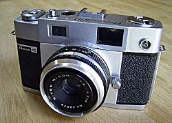 発売年:1958年レンズ:RICOH 45mm/F2.8 サイズ:123×77×64mm シャッター速度:B・1/10〜1/300秒 重量:約570g 電池:なし 当時価格:10000円 |