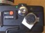 ![]() | 発売年:1977年レンズ:COLOR RIKENON 40mm/F2.8 サイズ:110×70×58mm シャッター速度:B・1/8〜1/500秒 重量:約440g 電池:H-C(MR44)型水銀電池 1個 当時価格:25800円 シャッタースピード優先EEまたはマニュアル可能の距離計連動式カメラ。このサイズと重さで、マニュアル操作可能とは魅力的。軍艦部にはバッテリーチェッカーやレリーズロック、シャッターチャージインジケータなど機械的に興味深い機構がついている。マニュアル操作時にはファインダー内にMの表示が出るだけではなく、露出計も機能する。(バルブにすると露出計はOFFになる)また、前面にある多重露出撮影用のスイッチが珍しい。 |