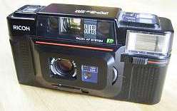 発売年:1984年レンズ:RIKENON 35mm/F3.2 サイズ:130×68×40mm シャッター速度:1/6〜1/600秒 重量:約300g 電池:単3乾電池2個 当時価格:42800円 オートフォーカス、プログラムAEカメラ。愛称は「マイポート」。赤外線アクティブ方式によるオートフォーカス。このオートフォーカス方式はリコーが独自開発のもので、使用しているLSIはカメラ業界でリコーだけが持つLSI工場で生産されたもの。レンズは5群5枚。ファインダー内に距離ピクトグラムがLED表示される。露出警告は人マーク点滅表示。レリーズボタン半押しでプレフォーカスができる。オート巻き上げ、巻き戻し。 |
