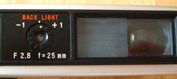 110フィルム式プログラムEEカメラ。110カメラの露出計としては珍しくメーター式露出計を内蔵したプログラムEE機。露出計指針はファインダー横に投影される。