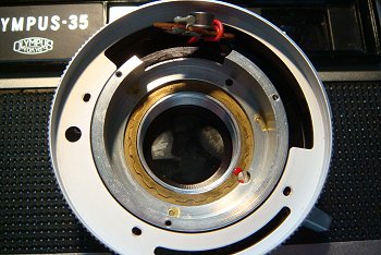 このような不具合の原因は、シャッターや絞りリングに連動している電極の接触不良が最も疑わしいものです。案の定、電極部分を接点復活剤でクリーニングしたところ、リングの動きによって露出計指針が変動するようになりました。