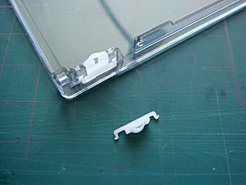 ![]() 折れた細い部品を接着しても強度が持ちそうにないので、代用部品を考えました。 部屋の中を探し回り、MDのケースにある部品を流用できないか試しました。 |