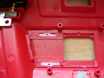 ![]() ちょうど溝にはまるように厚さを調整し、接着剤で固定してみました。 カバーをスライドしてみると、カチッというクリック感はないものの、ストッパーとして 機能しました。組み立て、カバーをスライドすると、ちゃんとカメラのスイッチがONになりました。 |
