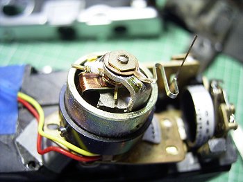 これが動かない露出計コイルです。テスター で通電しても針が振れません。コイル内部断線 でないことを祈りました。幸い原因はリード線 の断線でしたので、半田付けをして改善です。